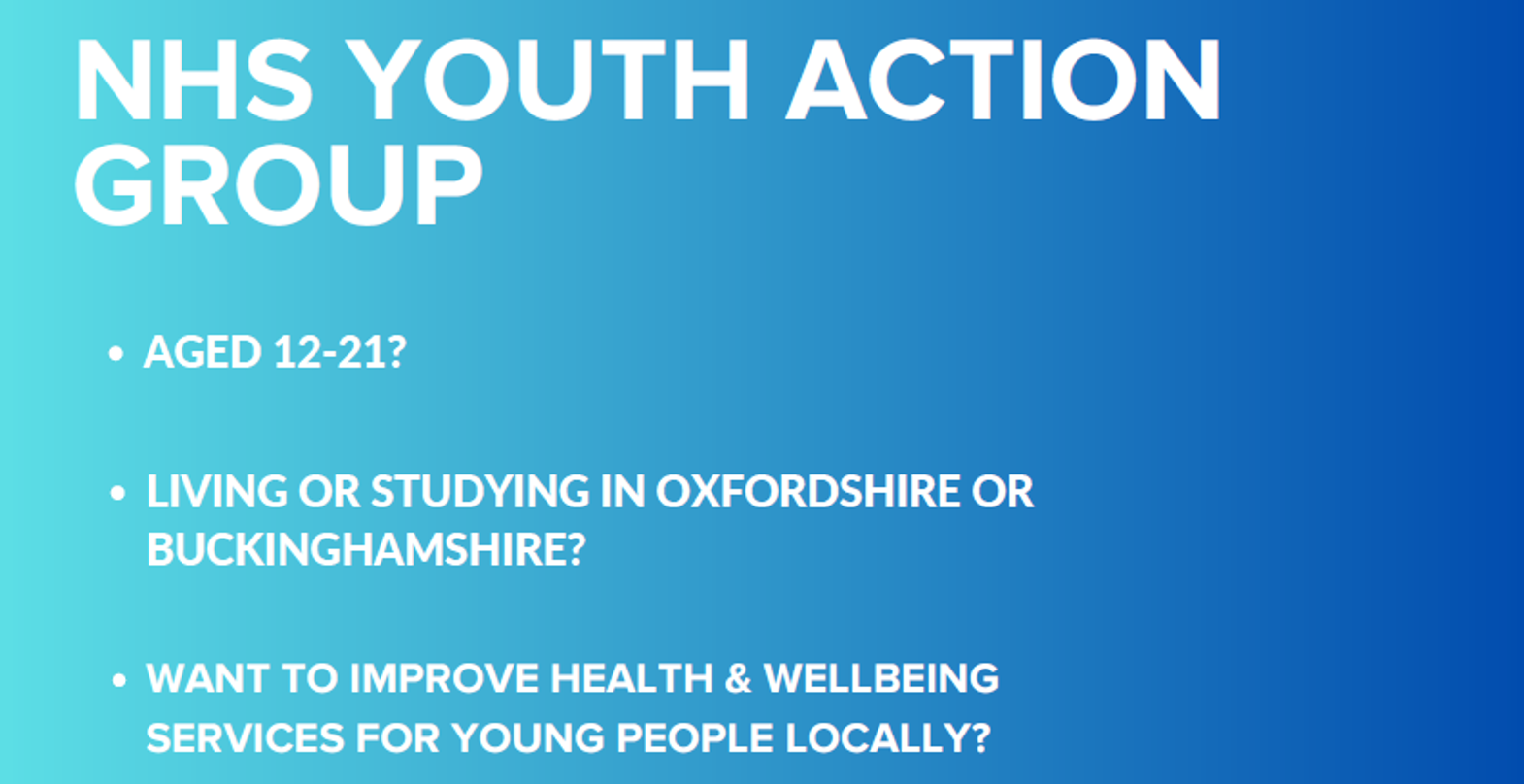Aged 12 to 21? Living or studying in Buckinghamshire or Oxfordshire? Want to improve Health and Wellbeing services for young people locally? Apply to Unloc's NHS Youth Action Group by Monday 1 December 2025!
