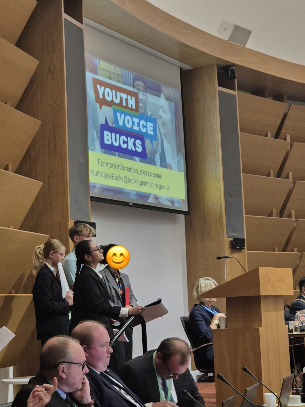 The invitation was a chance to raise the profile of Youth Voice Bucks, share young people’s priorities and projects directly with councillors, and offer a valuable opportunity for public speaking and professional development.